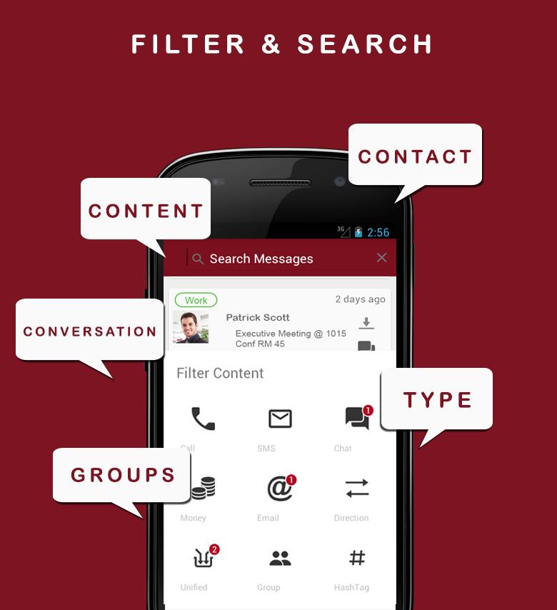 Filtro y búsqueda: filtro de mensajes rápidos integrales y opciones de búsqueda.