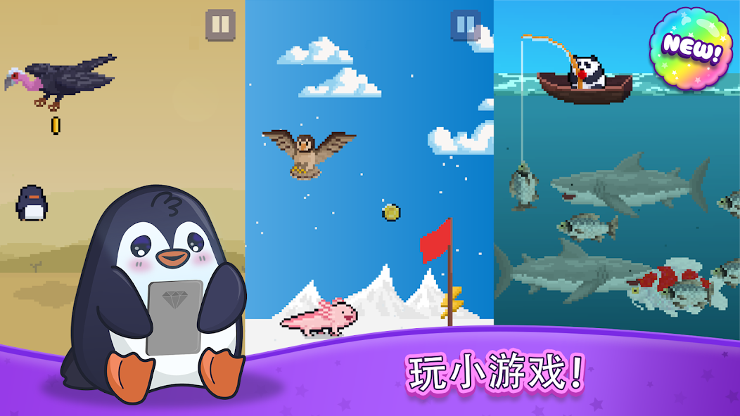 ¡Una amplia selección de amigos para mascotas hará que su experiencia de juego sea aún más diversa! ¡Elija un axolotl virtual, un gato virtual, un perro virtual, un panda virtual u otro amigo virtual de la diversa selección de mascotas digitales!