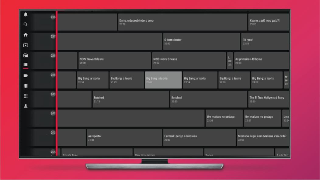 Detente para seguir los programas que te gustan. Vea todo a través de la aplicación TVN Sul - Android TV. Puede grabar horarios, rebobinar y ver la cuadrícula completa de todos los canales. Firme su combo ahora y obtenga acceso a la aplicación. ¡Hay más de 50 canales en alta definición!