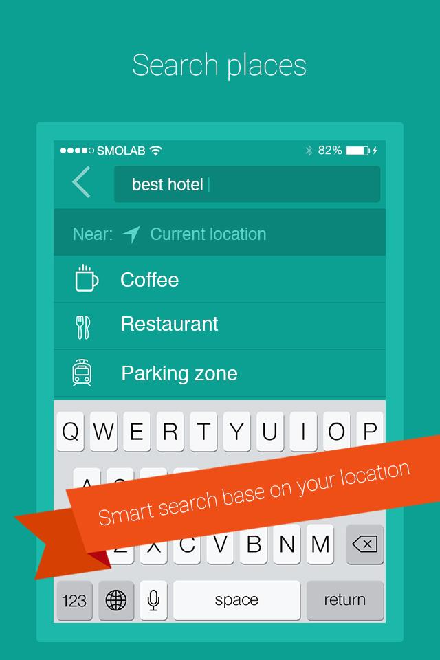 Lugares de búsqueda. Crear lugares en la ubicación actual. Compartir lugares a amigos