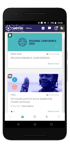 En Campfire puede conectarse con miembros de otras asociaciones de Girl Gying y Girl Scouting y Asociación Mundial de Guías Girls y Voluntarios de Girl Scouts (WAGGGS). ¡También puede interactuar en inglés, español y francés árabe para participar en programas Wagggs, cursos educativos y compartir las mejores prácticas con otras guías y niñas en todo el mundo!
