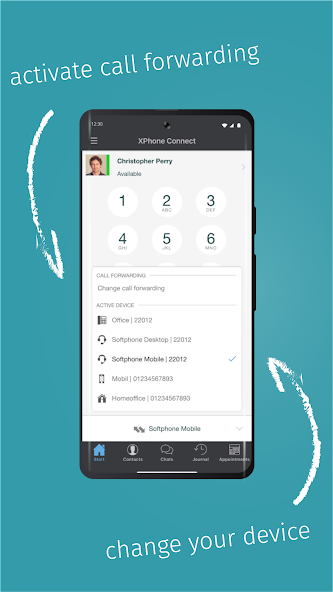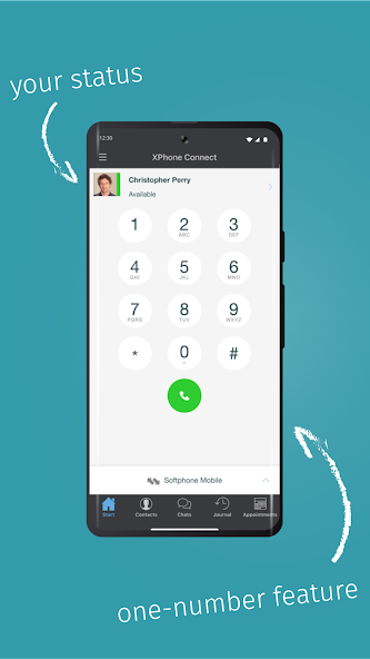 Con la aplicación XPhone Connect Mobile, tiene las características centrales con usted, incluso cuando está en movimiento: puede hacer llamadas en todo el mundo utilizando su número de oficina a través de Softphone Mobile, ajustar su reenvío de llamadas, chatear con colegas y tener acceso a los datos de contacto mientras se almacena en el servidor de su empresa en cumplimiento con las regulaciones de protección de datos.