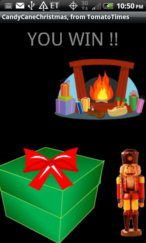 Lorsque les 10 cannes de bonbons sont utilisées, le coffret cadeau se ferme comme par magie. Si les 10 cannes de bonbon sont à l'intérieur du présent, l'utilisateur gagne et une surprise de Noël apparaîtra.