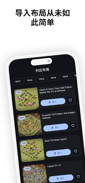• Choisissez parmi des centaines de dispositions de base pour Clash of Clans Town Hall et Builder Base.