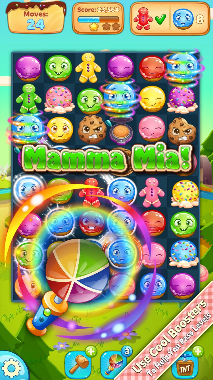 Aidez les beignets heureux et délicieux sauver leur monde des fours pervers et maléfiques. Utilisez vos compétences Match-3 pour faire éclater, éclater et exploser tous les obstacles sur votre chemin. Les fours maléfiques pensent que les minuscules beignets n'ont aucune chance contre eux. Ils ne savent pas qu'avec vous de leur côté, ce sont les fours qui n'ont aucune chance. Bénéficiez le combat et aidez les beignets à rendre leur monde doux et paisible une fois de plus. Allez-vous plonger dans le monde des beignets aujourd'hui?