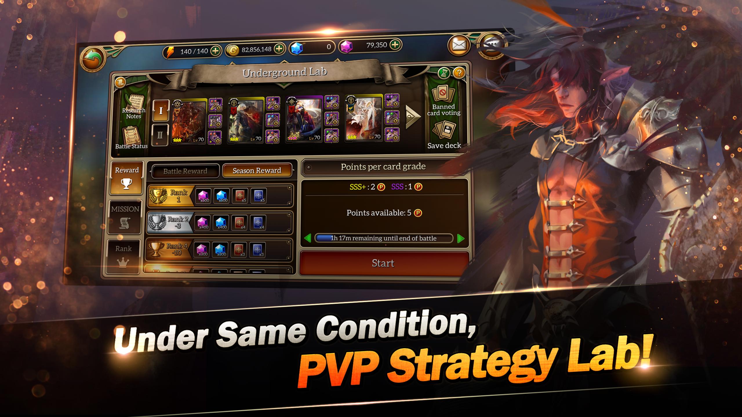 Assemblez votre propre deck en utilisant des centaines de cartes uniques et fantastiques avec divers types de races, de cours et de compétences dans votre propre stratégie.