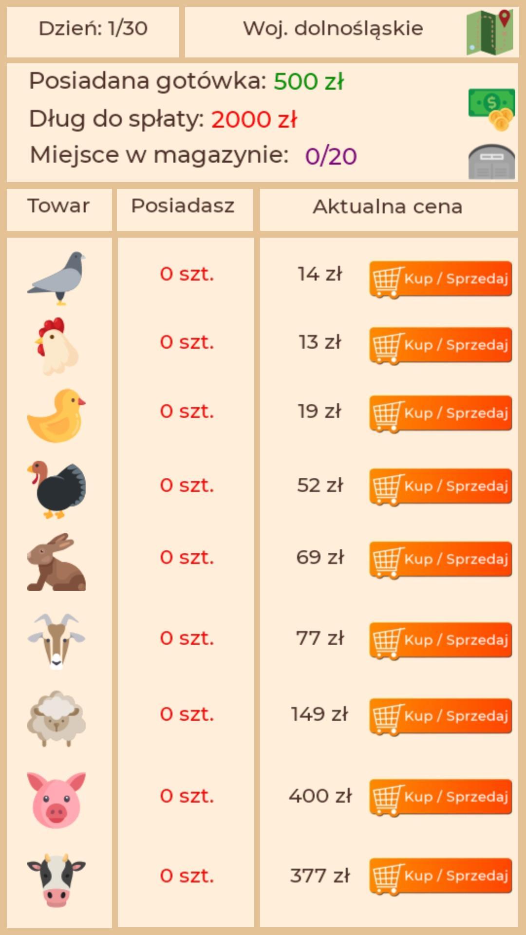 Voyagez en Pologne, achetez des animaux et vendez quand il est bénéfique.