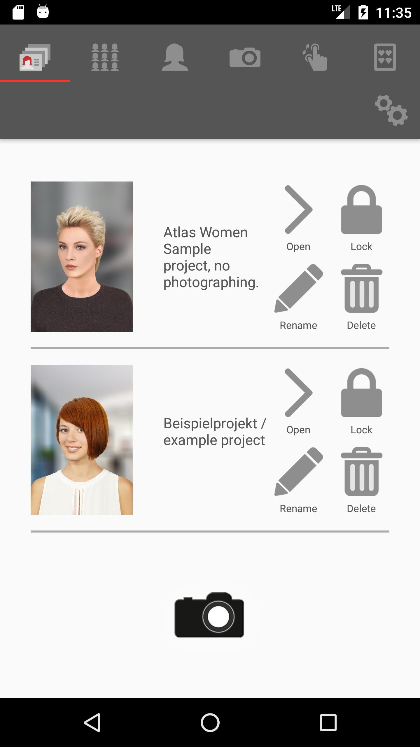 - Chaque coiffure en 3 perspectives: vous pouvez capturer 3 images de vos clients, en demi-profil, portrait et profil. Chacune de ces images peut être montrée avec toutes les coiffures.