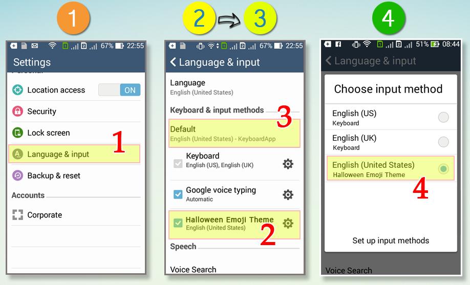 - Cliquez pour sélectionner l'anglais par défaut (États-Unis) - Halloween Emoji Theme .