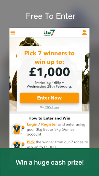 ITV7 est de retour! Le concours gratuit revient avec un nouveau design, mais la même occasion de gagner un énorme prix en espèces pour absolument rien si vous pouvez choisir les 7 gagnants de nos 7 courses choisies. Il est entièrement libre d'entrer, enregistrez simplement un compte ITV7 gratuit ou connectez-vous avec votre compte Sky Games existant.