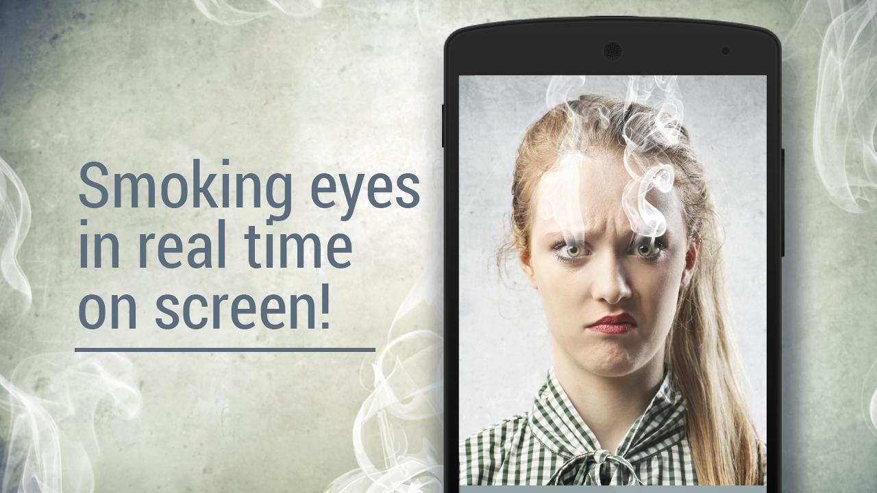 Live smoked eyes. Video est un effet de caméra. Téléphone direct vers le visage, l'éditeur vidéo définira la zone des yeux et ajoutera l'effet spécial. Les yeux à l'écran commenceront à fumer en temps réel! Tirez sur la vidéo avec Smoking Look! Ajoutez des rougeurs aux bords de fumée pour rendre l'effet plus fort! Montrez des yeux fumés en direct sur vos amis et placez la caméra sur leurs visages! L'éditeur vidéo rend la phrase brûlante alphabétisée! Créez une courte vidéo et partagez-la dans les réseaux sociaux! L'effet de fumée en direct est un effet spécial prêt à postuler!