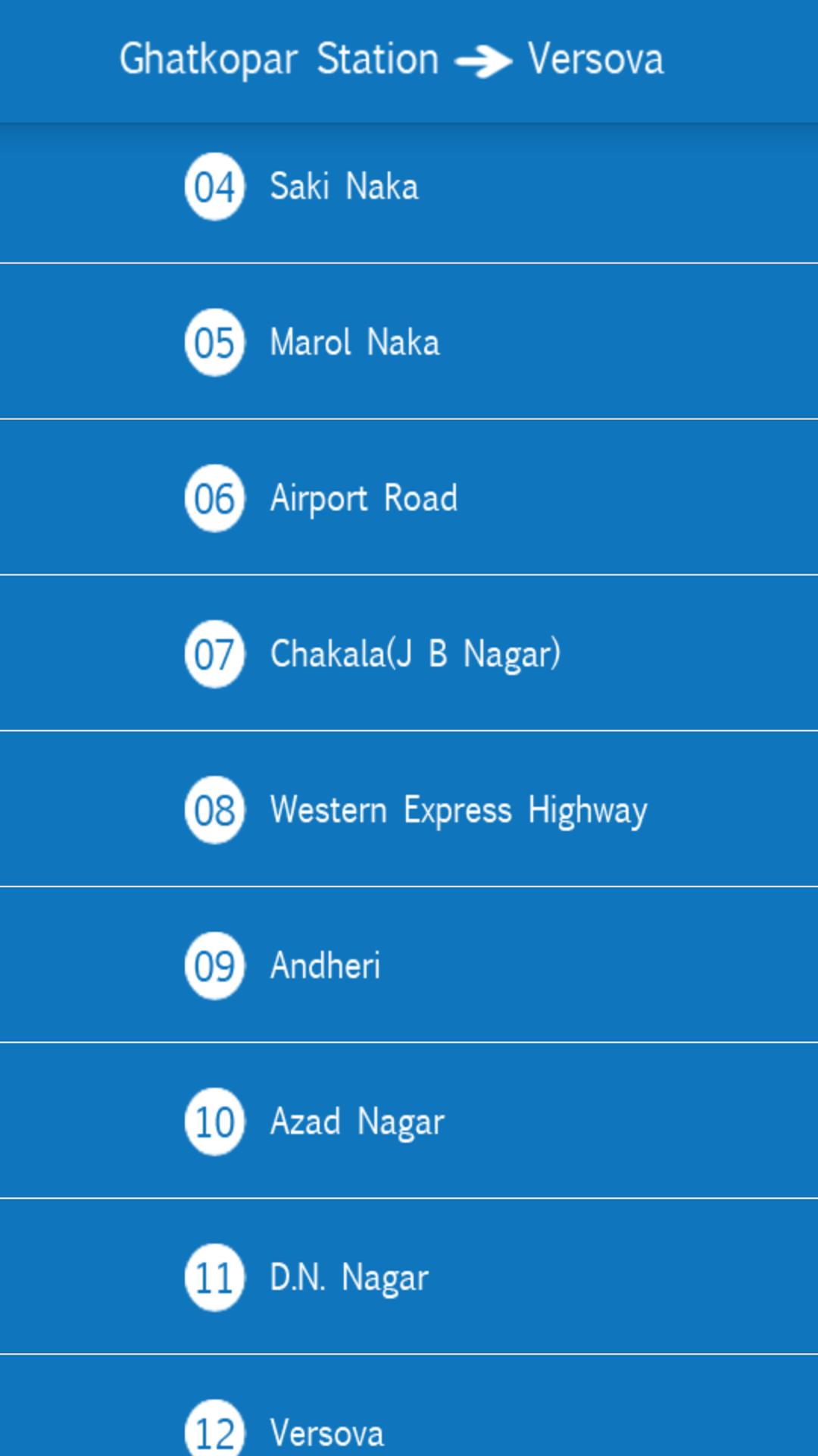 L'application Mumbai Metro Navigator fournit des informations concernant le calendrier de train Mumbai Metro Train. L'utilisateur peut accéder aux informations sur les horaires détaillés du calendrier et du métro.
