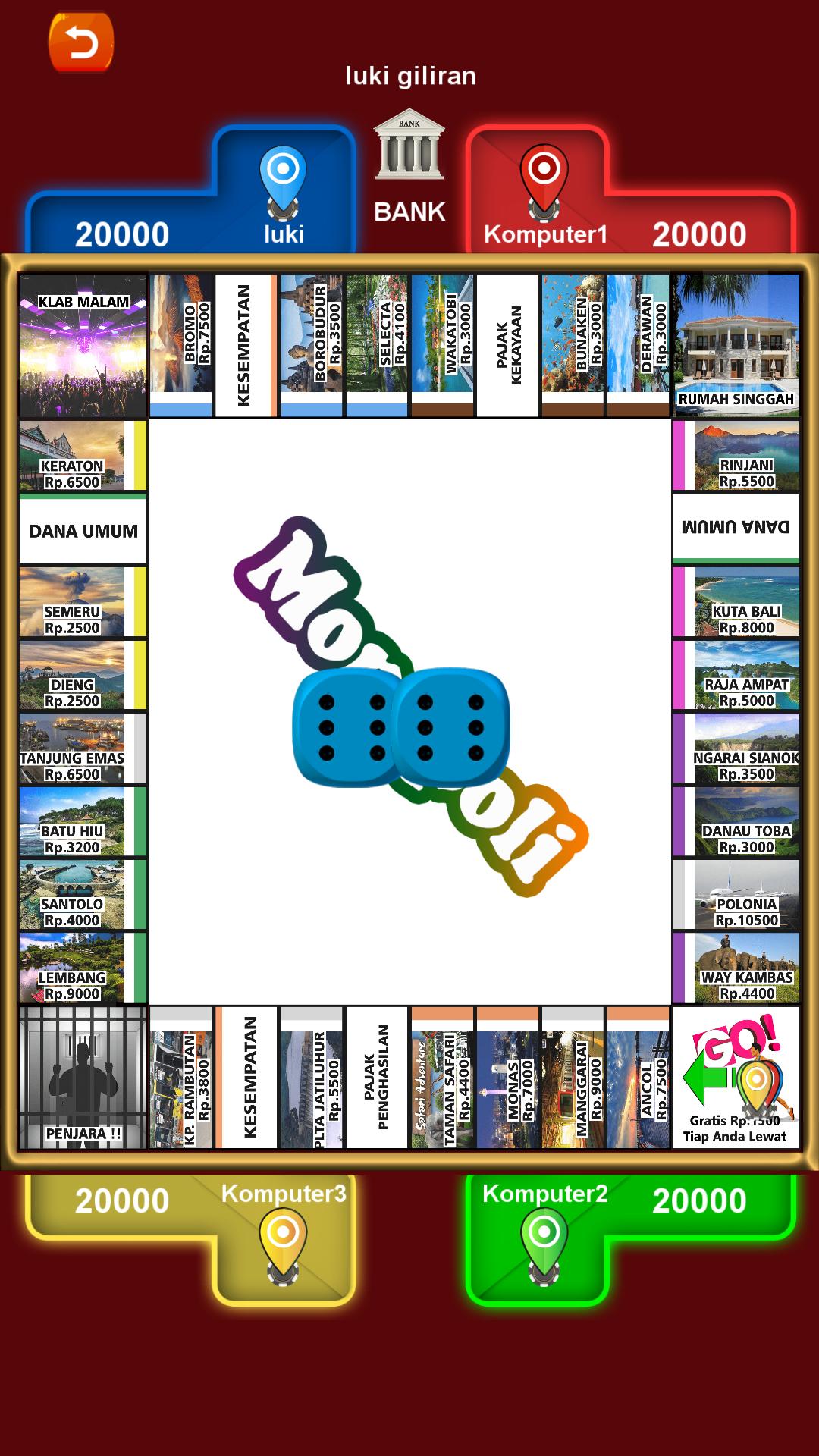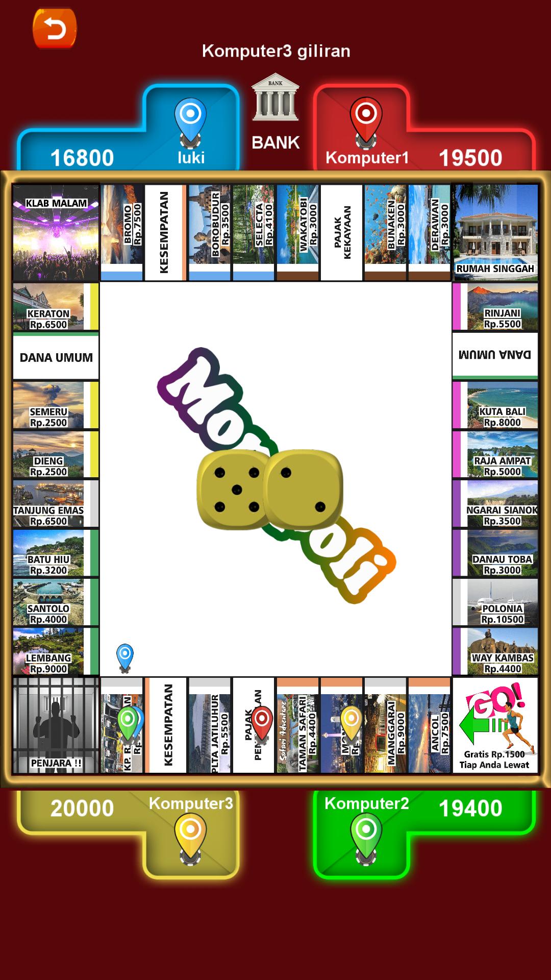 Monoopoly Indonésie est conçu avec les nuances des attractions touristiques en Indonésie comme actifs immobiliers. La langue utilisée est pleine d'Indonésie afin qu'il permette aux Indonésiens de le jouer facilement.