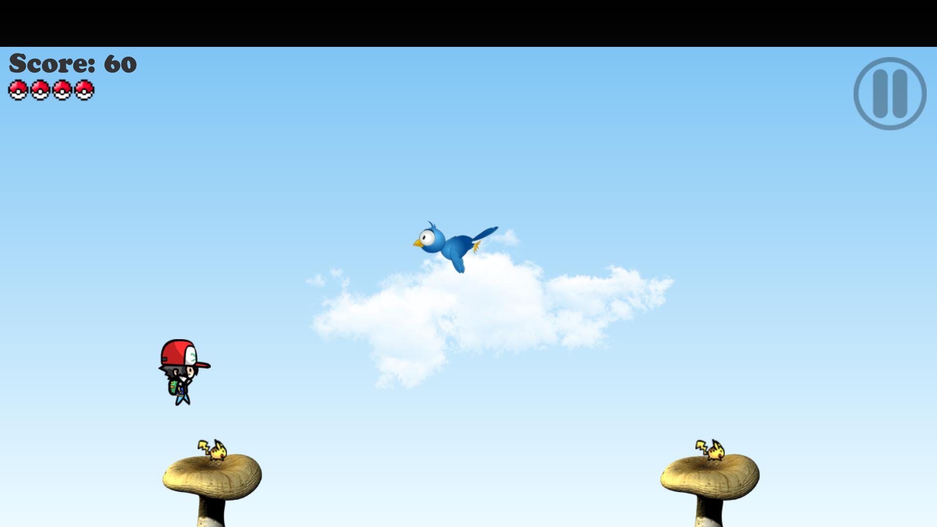 Sautez avec des cendres sur les champignons pour ramasser Pikachu! Vous pouvez également sauter sur l'oiseau!