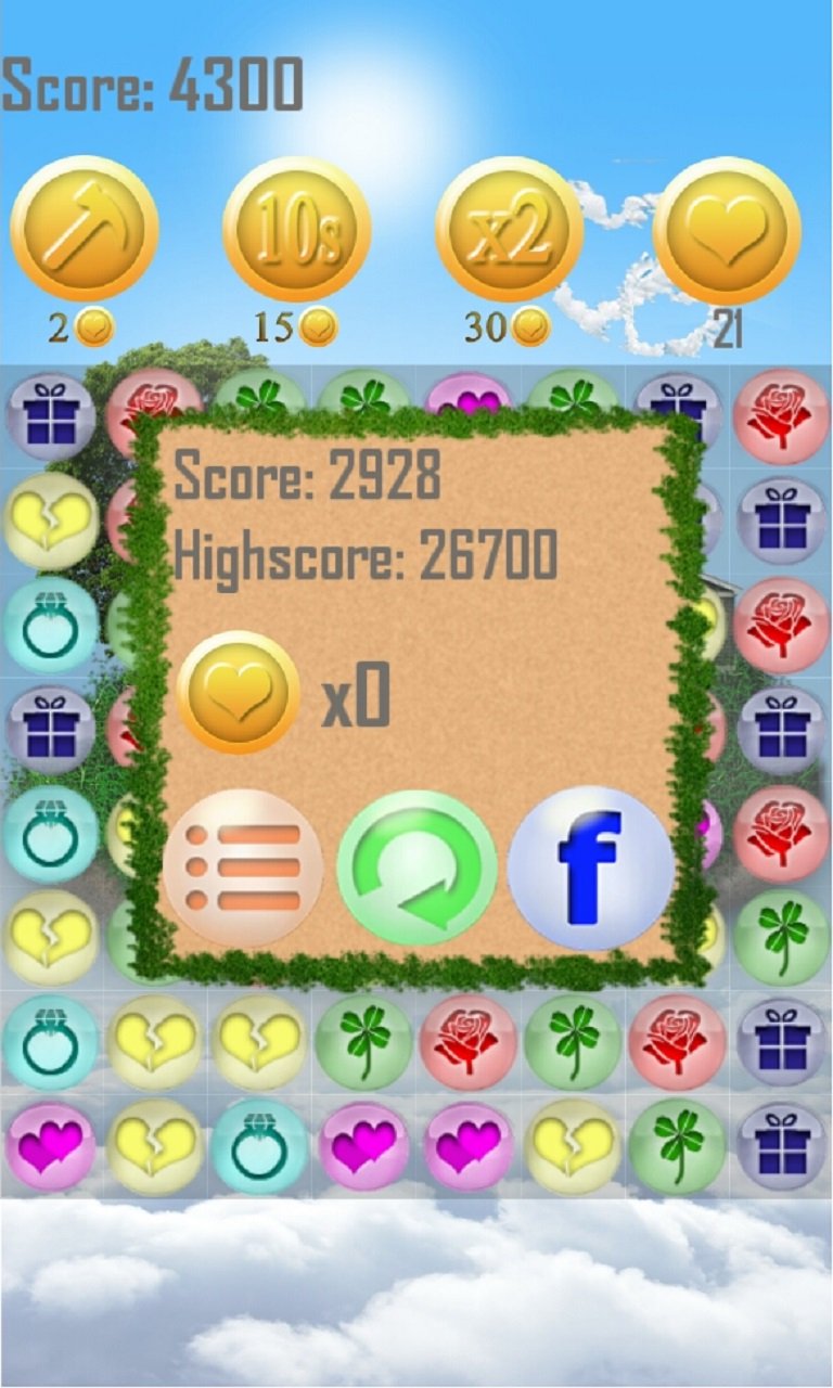 Sweet Valentine - Jeu de Match 3 - symboles et couleurs de l'amour