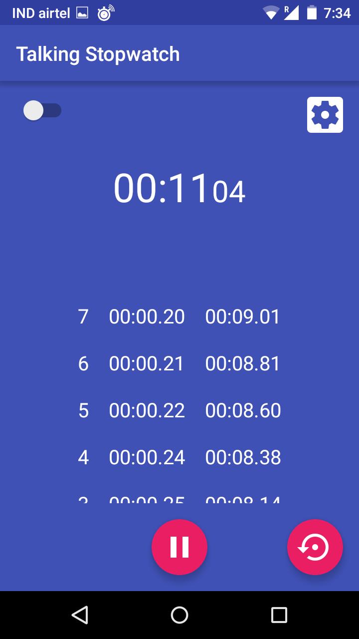 Présentation du « Talking Stopwatch », chronomètre simple mais puissant. Pas besoin de regarder le chronomètre pour le temps écoulé, le Talking Stopwatch vous parlerait du temps écoulé. Le comptage peut être arrêté et reprendre. L'intervalle de notification vocale peut être configuré.