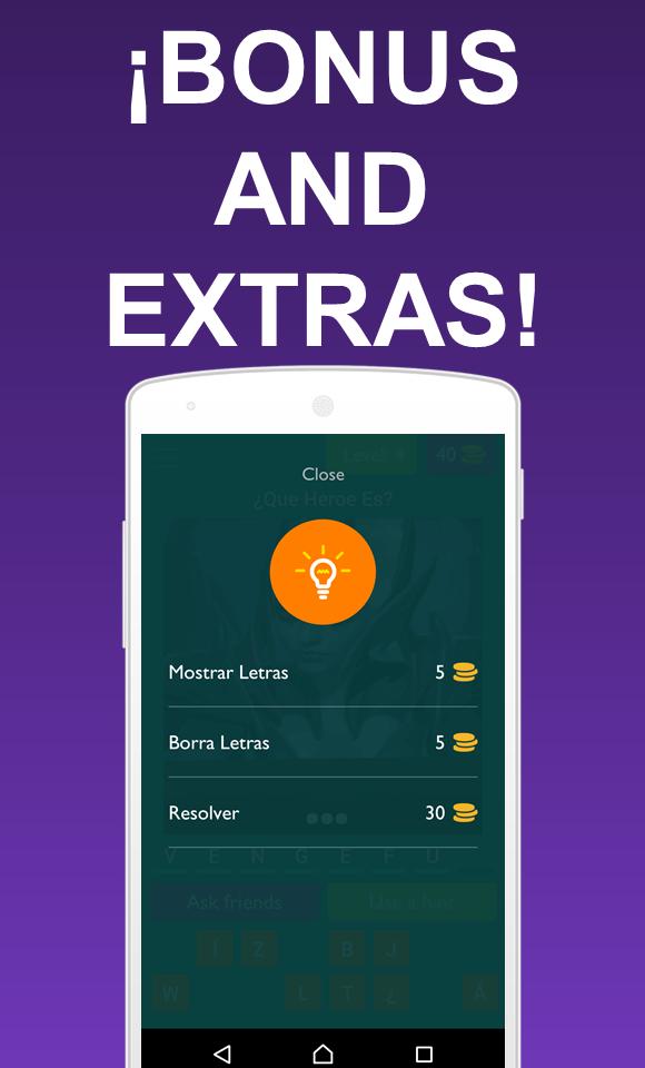 At each level you can use aids and extras with the coins obtained. You can also ask your friends for help using whatsapp, telegram or facebook.