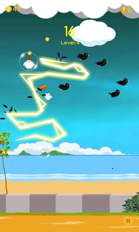 Untungnya, anak ayam lain membuat gelembung ajaib yang bisa membawa lalat Chikiwi pergi untuk menyelamatkan anak -anaknya diculik. Bantu Chikiwi untuk menyelamatkan anak -anak ayam dengan memberikan payung. Serang burung dengan bom dan lebah buah.