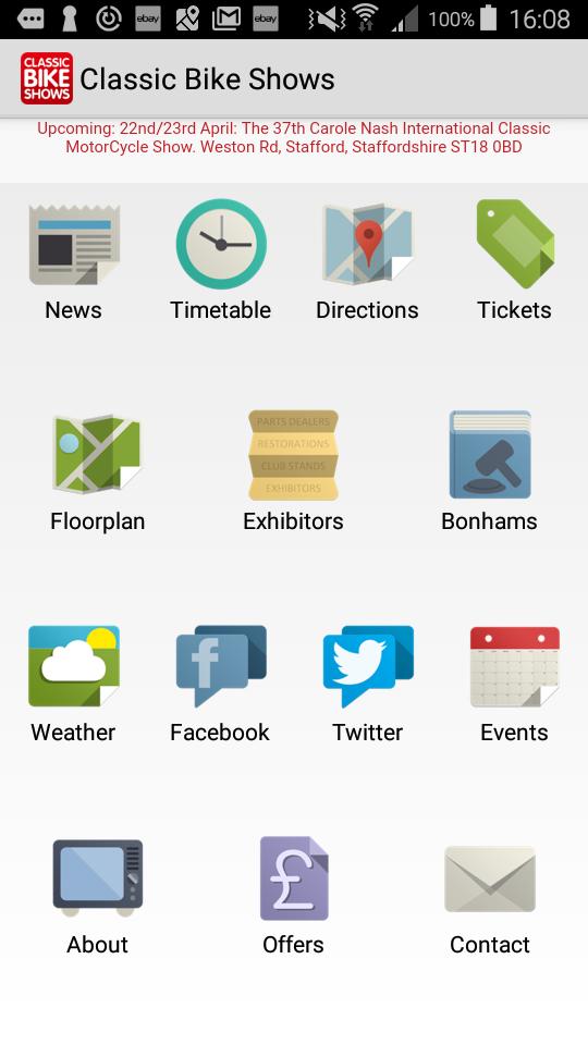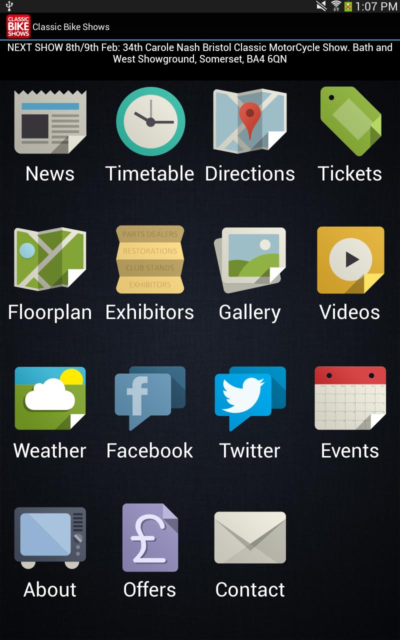Aplikasi ini dirancang untuk meningkatkan pengalaman semua pengunjung ke setiap pertunjukan sepeda klasik dengan menempatkan informasi dan fitur berikut di ujung jari mereka.