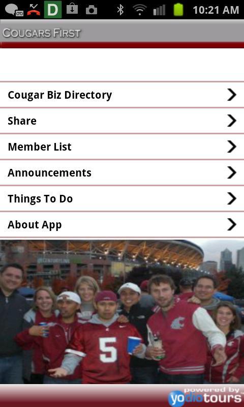 Cougarsfirst adalah komunitas aplikasi yang menghubungkan cougars dari Washington State University ke sesama coug. Aplikasi ini memungkinkan Cougs menemukan sesama alumni Cougar dan memberikan info untuk mendukung coug dalam bisnis.