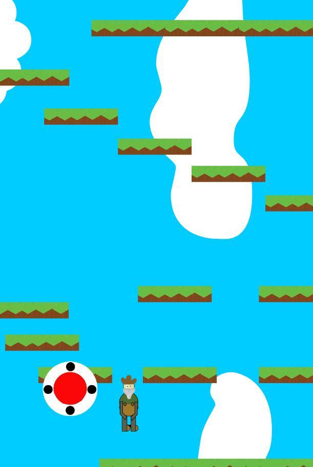 Gunakan joystick layar sentuh untuk manuver Dave ke atas platform untuk mendapatkan pickxe -nya kembali.
