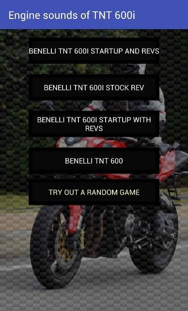 Aplikasi Setiap kebutuhan penggemar sepeda - nikmati suara knalpot mesin epik TNT 600i. Akselerasi yang sangat keras dan epik, putaran dan terbang dengan! Perbaiki keinginan sepeda harian Anda dengan aplikasi yang luar biasa ini!