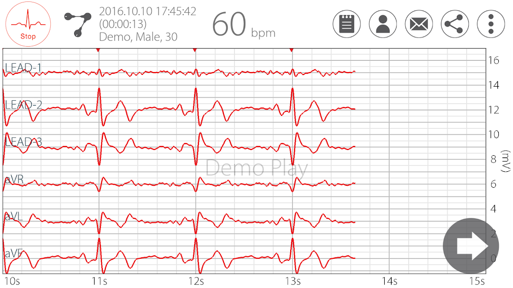 - Monitor EKG, detak jantung, HRV dan tingkat stres secara real time.