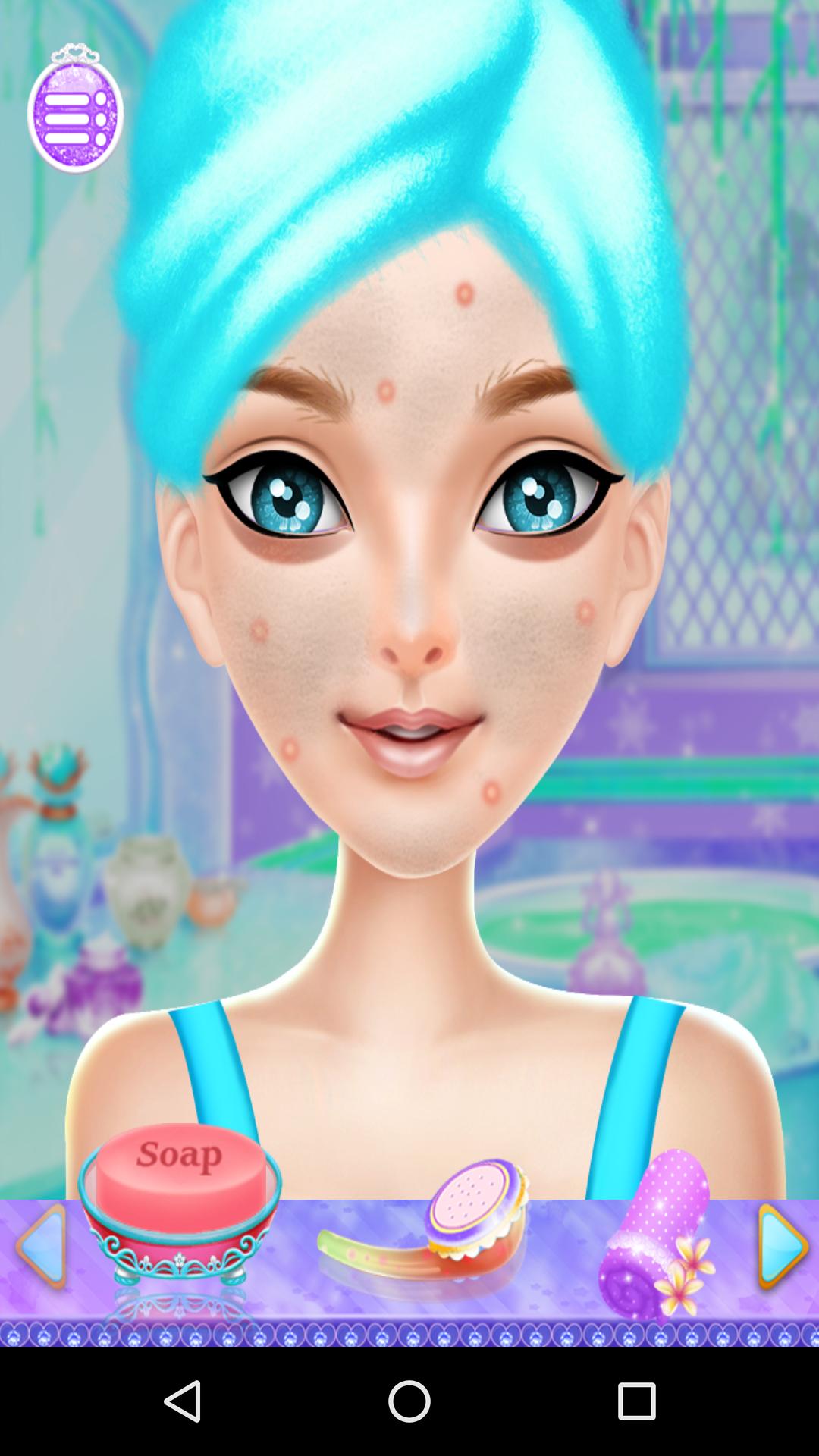 1) Tampilan pertama adalah perawatan wajah spa untuk gadis itu.