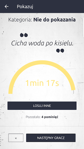 Anda tidak perlu setiap momen layar untuk menunjukkan kepada para pemain lainnya. Setiap pemain melihat di ponselnya saat Anda menggambar, dan apa kategorinya. Setuju tentang berapa banyak poin yang ingin Anda mainkan, dari mana mereka menggambar banyak ke kategori kata sandi, selama yang dapat Anda tebak, przepiszcie tim Zezwólcie atau tidak untuk menghilangkan kata sandi dan rysujcie :)