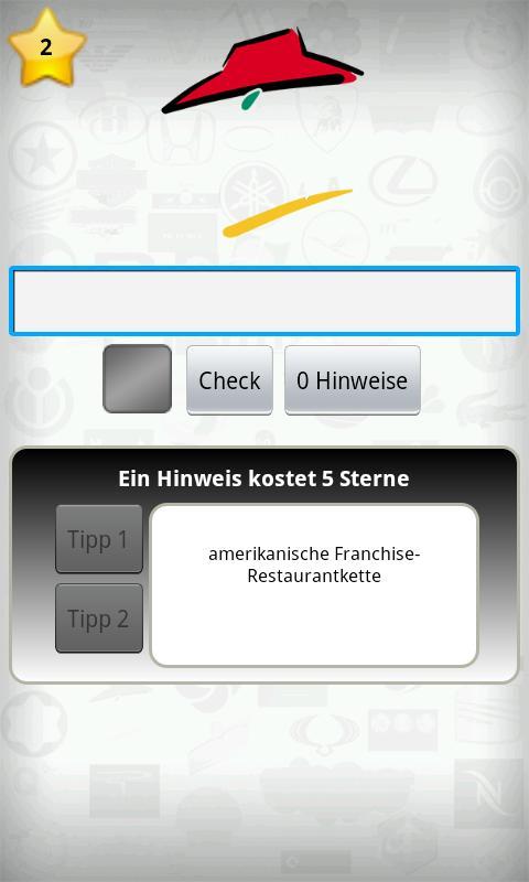 Untuk setiap logo Anda dapat menggunakan 2 petunjuk. Petunjuk No. 1 Mengurangi 7 poin, Petunjuk No. 2 menundukkan 10 poin. Petunjuk Pantai 5 Bintang. Bintang yang bisa Anda dapatkan jika Anda memecahkan logo yang baik atau sempurna.