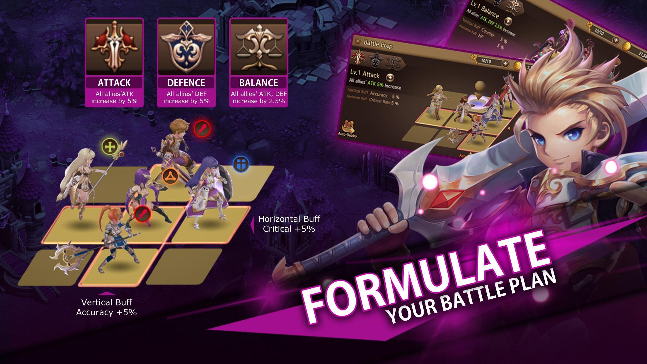 • Personalisasi formasi pertempuran pasukan Anda dengan sistem grid untuk melawan strategi musuh!