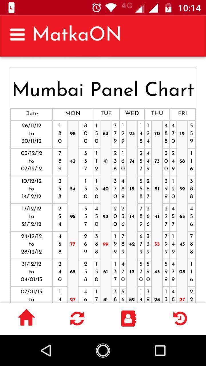 Bagan Satta Matka diperbarui setiap hari di situs web kami. Lihat grafik mingguan Satta, terbuka untuk menutup bagan, bagan Jodi & Panna, bagan Kalyan harian, bagan Mumbai, bagan Hari Milan, Bagan Hari Rajdhani, Bagan Panel Kalyan, Bagan Panel Mumbai dan semua bagan panel lainnya secara gratis.