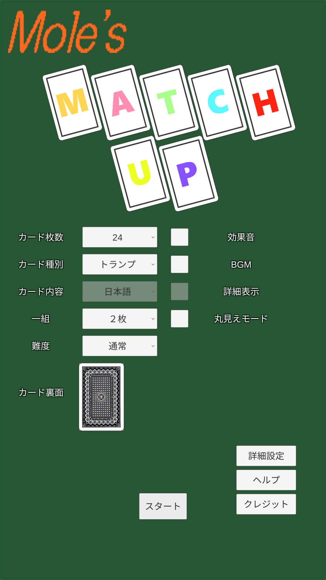 Jika Anda menyiapkan file, Anda dapat mengubah sisi belakang kartu dan efek suara. Dimungkinkan juga untuk mengubah huruf menu. (Silakan lihat dan http://mole-kingdom.com/wpbl/2018/08/26/19685.html)