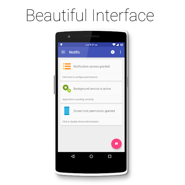 Aplikasi ini menggunakan izin administrator perangkat. "Force Lock" digunakan untuk mematikan layar ketika semua Notific diberhentikan.