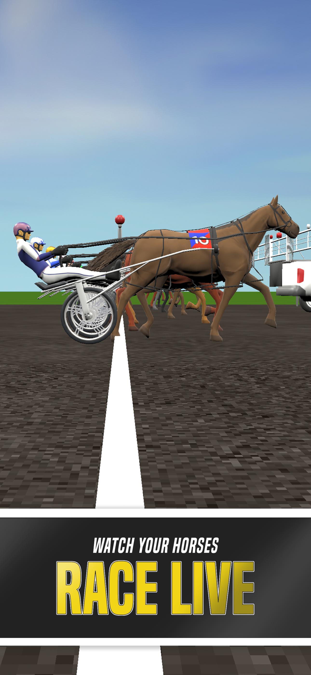 Setelah memasukkan kuda Anda dalam jenis balapan realistis, tunggu dan saksikan balapan Anda secara langsung dalam grafik 3D penuh. Berkendaralah bersama pengemudi Anda, sambil mengantisipasi kemenangan berikutnya untuk kuda Anda! Dapatkan semua kegembiraan memiliki kuda balap sungguhan! Saksikan kudamu bersaing dengan pengguna lain dari seluruh dunia!