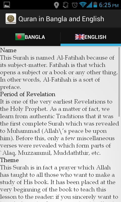 Baca Quran in Bangla and English di samping bahasa Arab !! Konteks dan tema masing -masing sura.