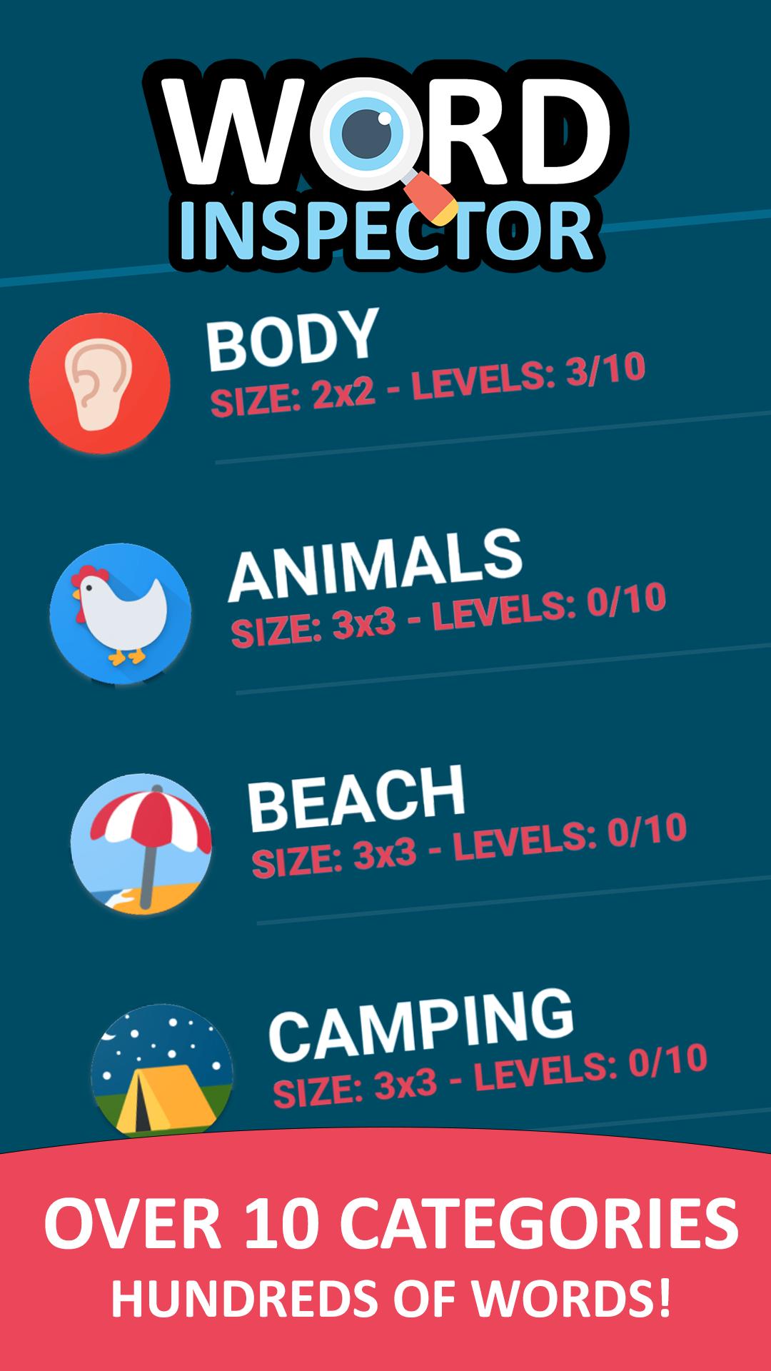 Menjadi inspektur sejati dan temukan kata -kata tersembunyi dalam game ini, Anda adalah inspektur dan terserah Anda untuk menemukan semua kata, ada berbagai kategori dan semuanya dapat dipecahkan dan sangat menyenangkan untuk dimainkan. Kesulitan pada setiap kategori meningkat saat Anda bermain. Anda juga dapat belajar dan memperluas kosakata Anda dengan bermain!