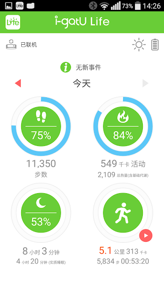 i-gotU Life Qバンド/Qウォッチと完全に機能します。これは、日常生活でトレーニングの進行状況と睡眠の質を追跡/記録します。 Qバンド/Qウォッチを使用すると、さまざまな目標を設定して、より集中的なトレーニングを試みるように動機付けますが、 i-gotU Life Qバンド/Qウォッチから直接通知、電子メール、メッセージ、カレンダーイベントアラート、または他のソーシャルメディアアプリからのカレンダーイベントアラート、プッシュ通知など、さまざまな通知に直接通知し続けるためのフレンドリーなリマインダーを提供します。ワークアウト中に、心拍数、速度、距離、カロリーなどを含むQバンド/Qウォッチ画面でのi-gotU Life i-gotU Lifeの運動進行のリアルタイムデータを表示することができます。あなたが友達とそれをするとき、運動はいつももっと楽しいです。フレンドリーなフィットネスの仲間を使用して、どこにいても、運動するたびに友達を招待して、励ましの言葉でお互いにやる気を起こさせます。さらに、 i-gotU Life使用すると、ほんの数回タップで、Googleドライブを使用してすべてのトレーニングデータを簡単にバックアップまたは復元できます。