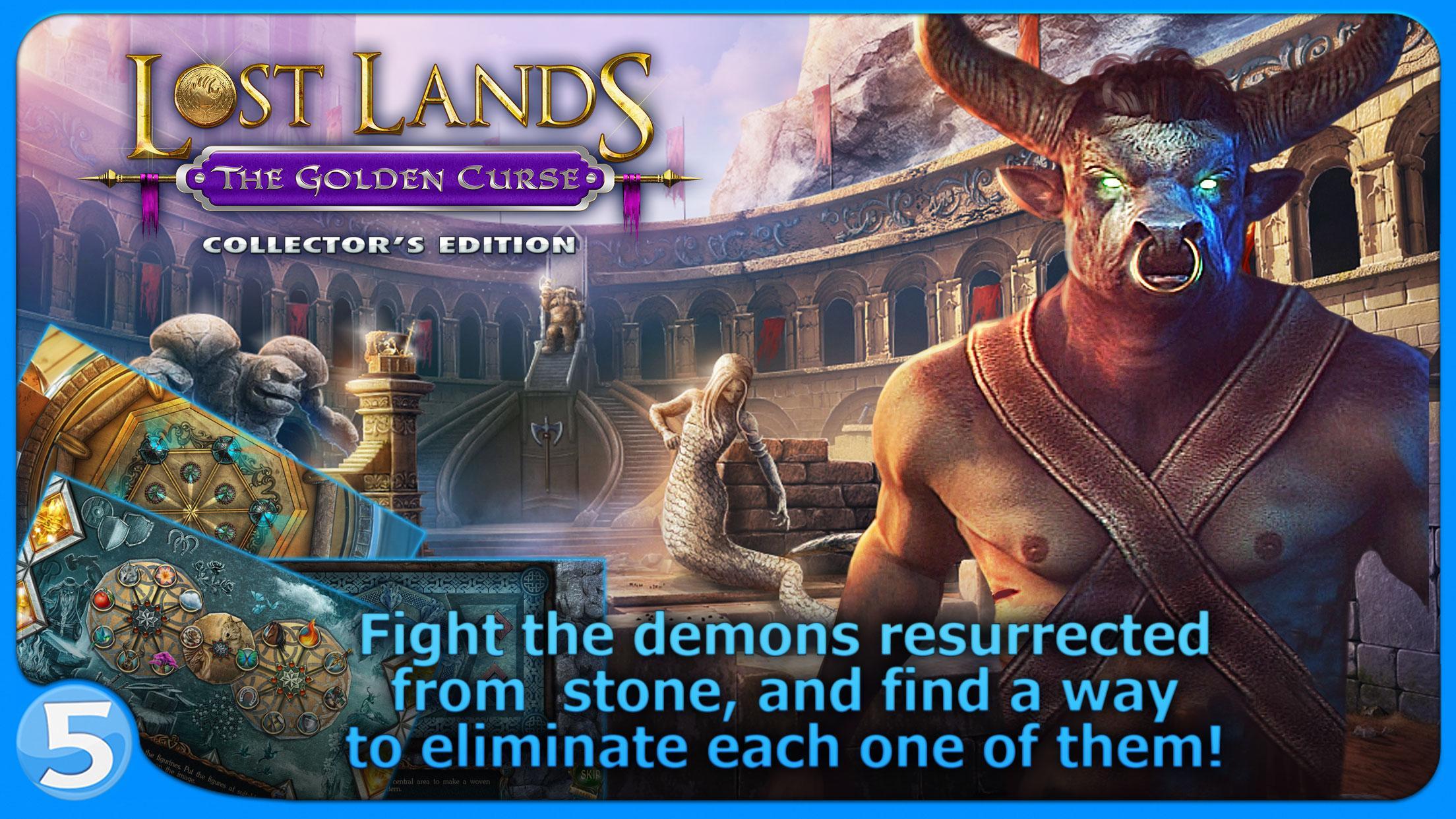 Lost Lands: the Golden Curse は、火山の谷からドルイドの森、深い洞窟から浮遊島に至るまで、ファンタジー世界の無限の空間に散りばめられたパズルやミニゲームを備えた冒険的な探し物ゲーム クエストです。