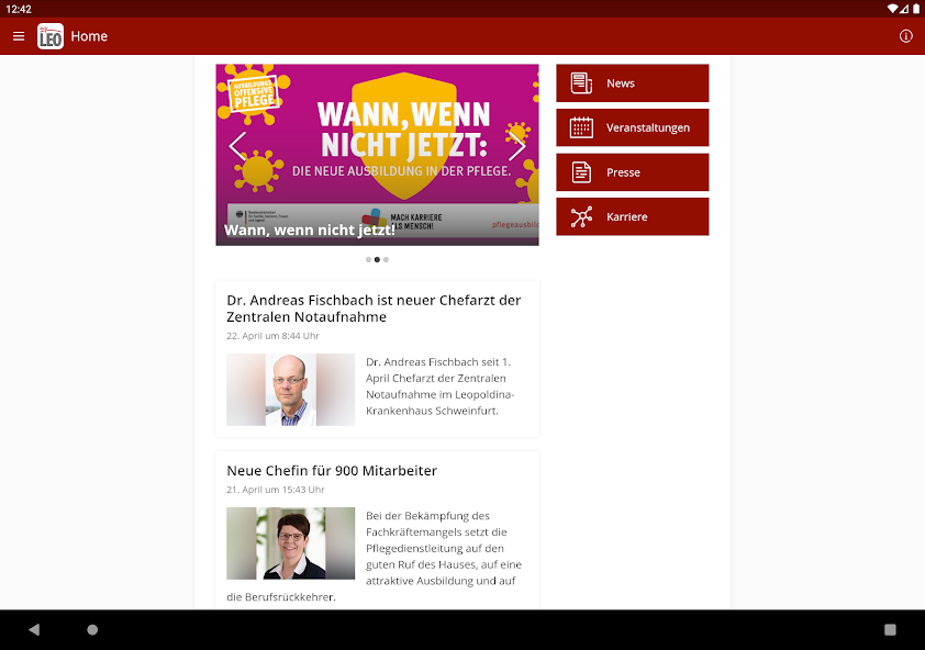 myLEOアプリを使用すると、Schweinfurt Gmbh市のLeopldina病院から一般的なニュースと情報を受け取ります。