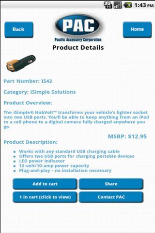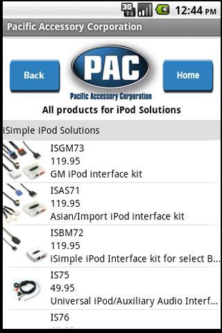Android 2.0以降のPacific Accessory Corporation 、統合のニーズに合う製品のどれを発見するプロセスを簡素化するように設計されています。メーカー、モデル、および年ごとに検索して、特定の車両と互換性のあるすべての製品を表示します。また、特定のポータブル電子デバイスを選択して、どの製品が作られているか、またはデバイスと互換性があるかを確認することもできます。