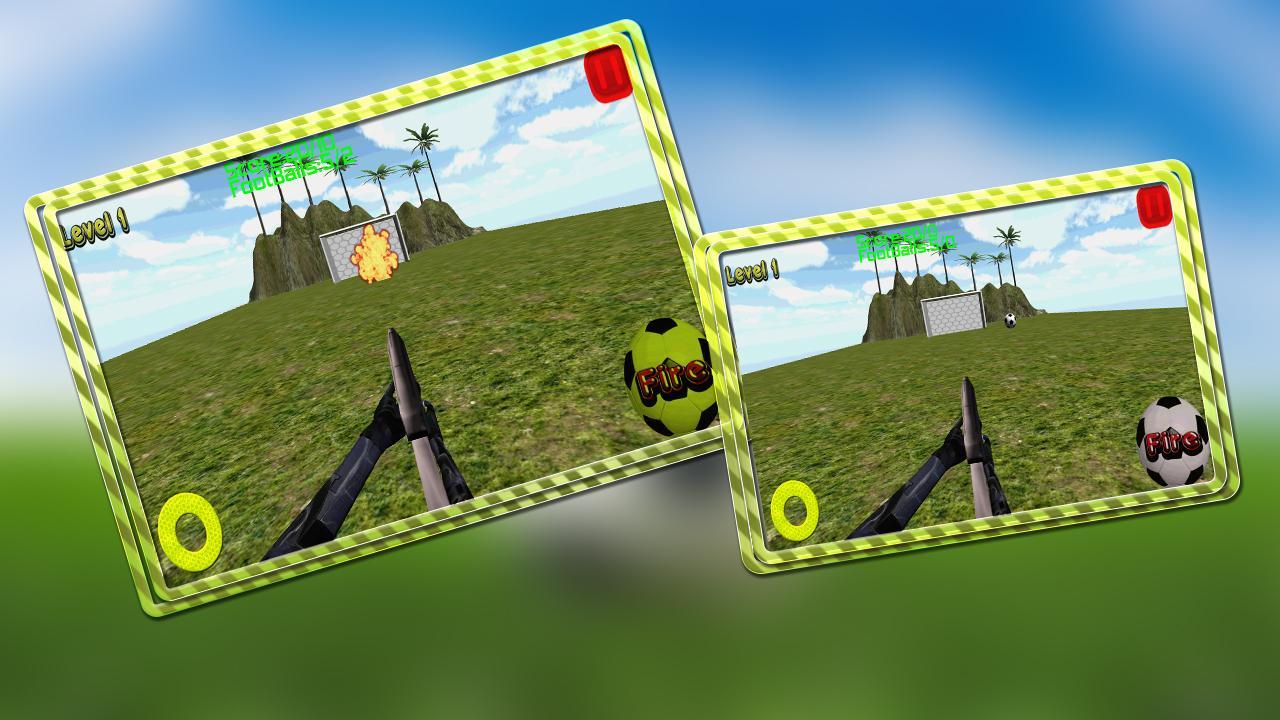 プレイヤーは並んでいるサッカーを撮影しなければなりません。このゲームは、最終的にペナルティショットをプレーするためにサッカー選手にスポーツを与えます。このゲームは、ボトルシューティングゲームのようなもので、プレイヤーはボトルを撮影する必要がありますが、私たちのゲームではボトルをサッカーに置き換えました。あなたは山の美しい見られたものを楽しんで、Androidユーザーに印象的なグラフィックを備えた最も面白いサッカーゲームを提供します。