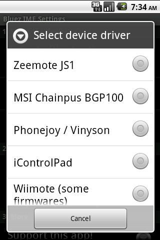 이 응용 프로그램은 Bluetooth 입력 장치의 데이터를 읽을 수있는 새로운 IME (Soft-Keyboard)를 설치합니다. 지원되는 장치는 Zeemote JS1, MSI ChainPus BGP100, PhoneJoy 및 ICONTROLPAD (ICP)입니다.
