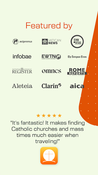 이 응용 프로그램은 현재 위치 근처의 근처의 가톨릭 교회를 즉시 찾아 대량 일정, 조정 일정, 전화, 이메일, 웹 사이트 및 주소 (방향 포함)를 포함하여 각각에 대한 가장 관련성있는 정보를 표시합니다. 이 앱에는 전 세계 10 만 명 이상의 교회에 대한 정보가 포함되어 있습니다.