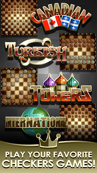 • 5 개의 게임 모드 : American Checkers, International, Canadian, Towers 및 Turkish Draft!