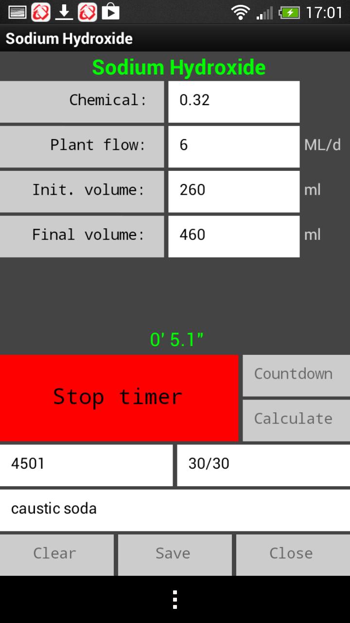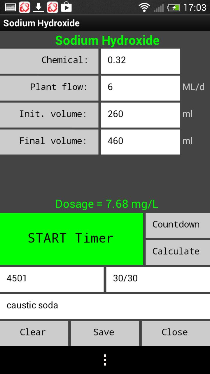 - 애플리케이션에 맞게 편집 할 수있는 사전로드 화학 물질 및 펌프 번호가 있습니다. 수율을 계산하려면 화학 물질의 비중과 농도를 찾아야합니다. 화학 전달 도크 에서이 정보를 찾을 수 있습니다.
