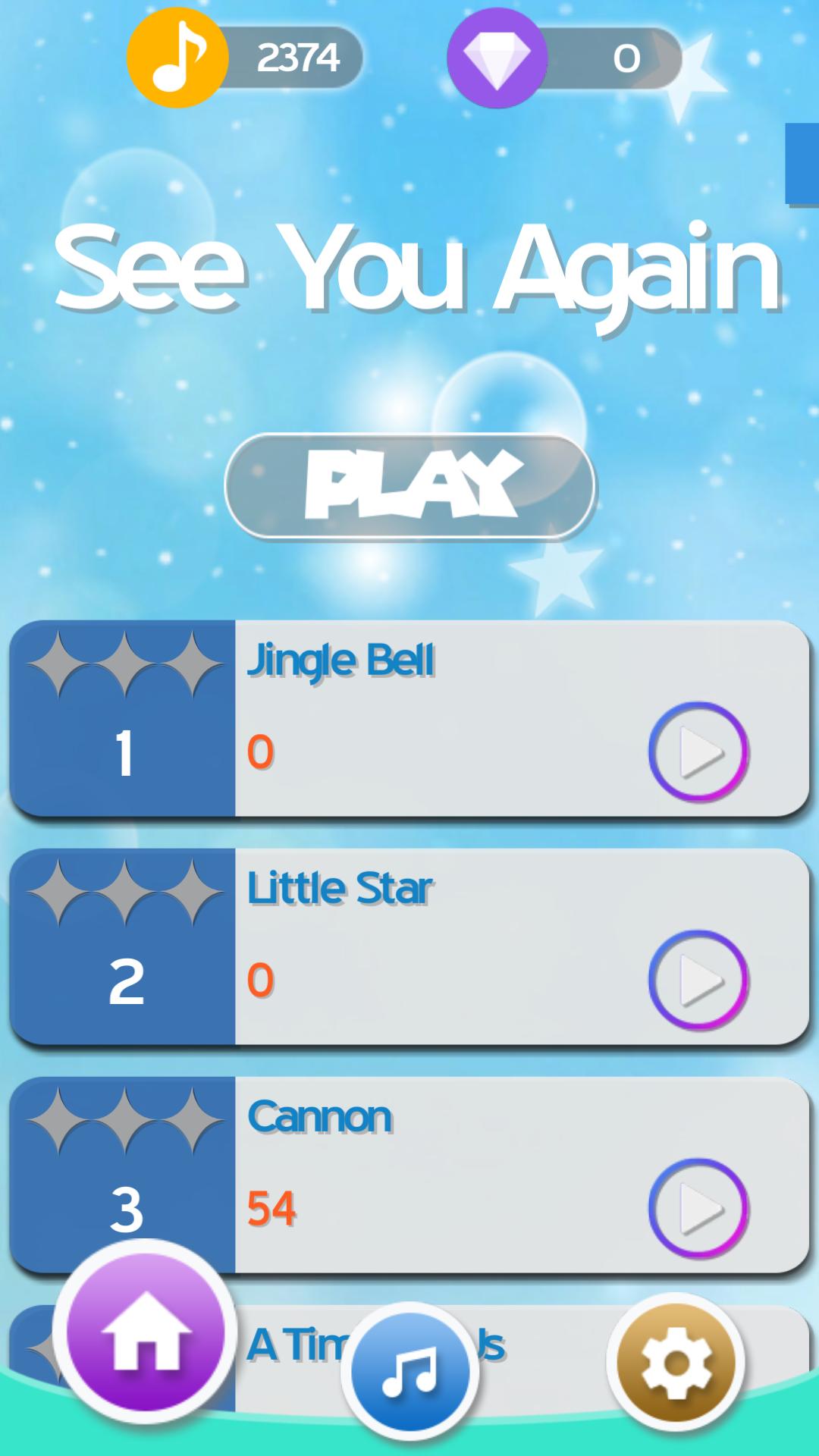 *** 전체 피아노 노래를 재생 한 후 빠른 재생 버튼을 탭하여 끝없는 모드로 직접 입력 할 수 있습니다.