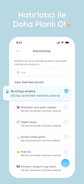 당신은 당신이 원하는만큼 자주 설정할 수 있다는 알림의 혜택을 누릴 수 있습니다. 중요한 정보와 정기적으로 반복하려는 주제를 기억하도록 알림을 켜십시오. 이 기능을 사용하면 새로운 건강 습관을 얻고 선택한 분야에서 동기를 부여 할 수 있습니다.