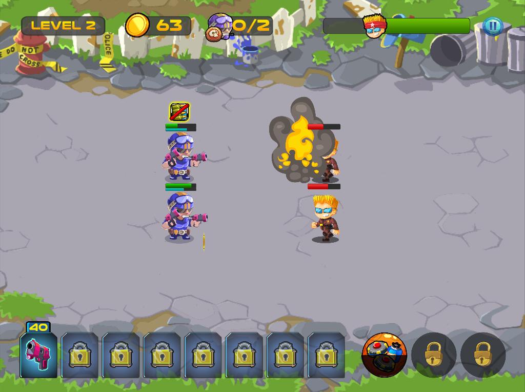 군인을 선택하고 그들에게 진정한 기념비를두고 게릴라를 상대로 당신의 마을을 방어하십시오. 게릴라가 당신의 군인들을 통과한다면, 당신은 당신의 마을과 게임을 잃게 될 것입니다…