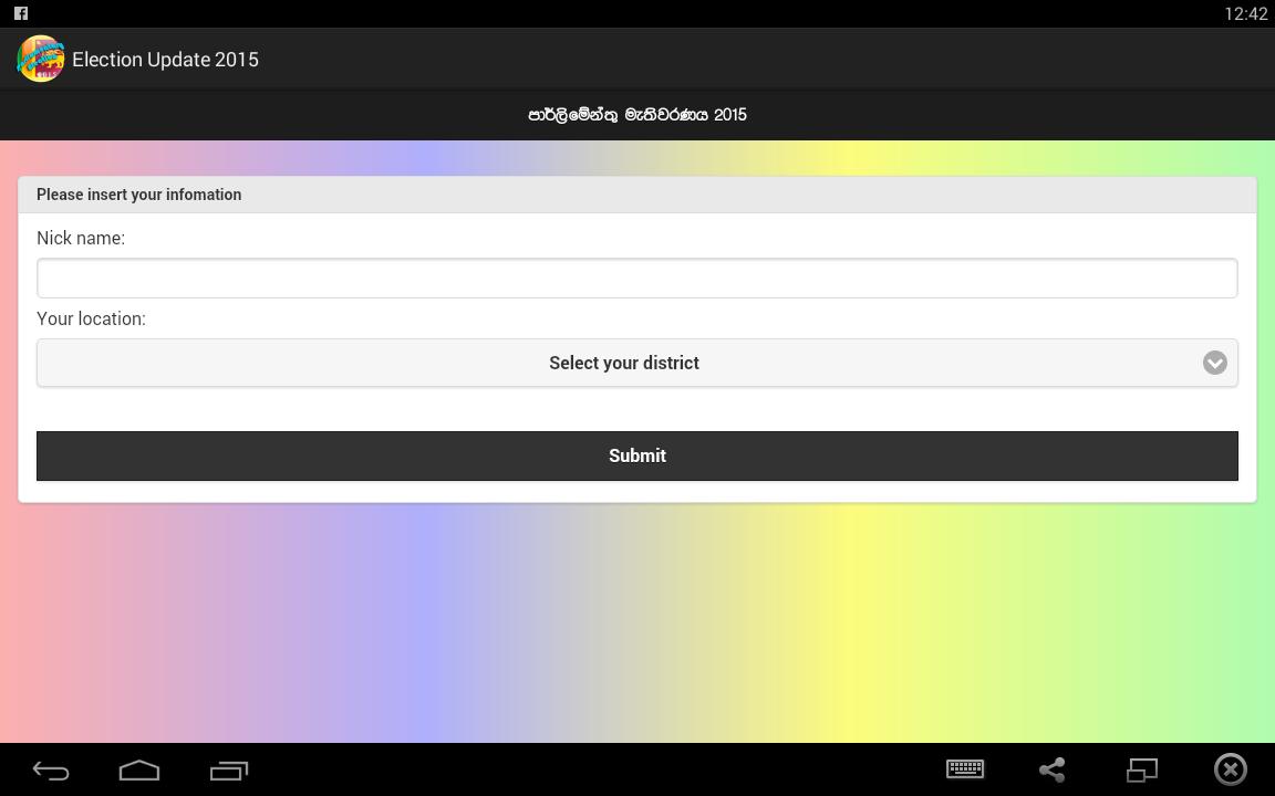 이 앱은 Srilanka Parliamentary Election 2015 와 관련하여 일회성 사용을 위해 만들어집니다.